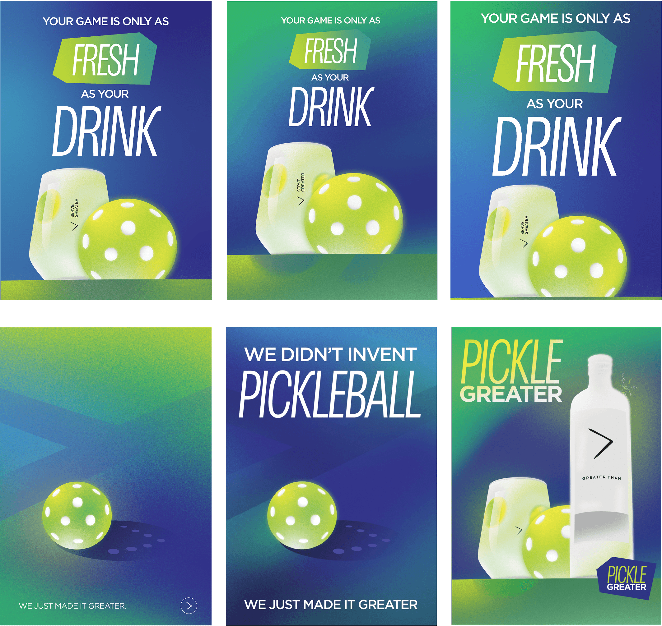 The color palette green, blue, with a tinge of yellow reflects the feeling of cool, refreshing summer drinks, that matches the vibe of the sport’s vibrant outdoor energy.